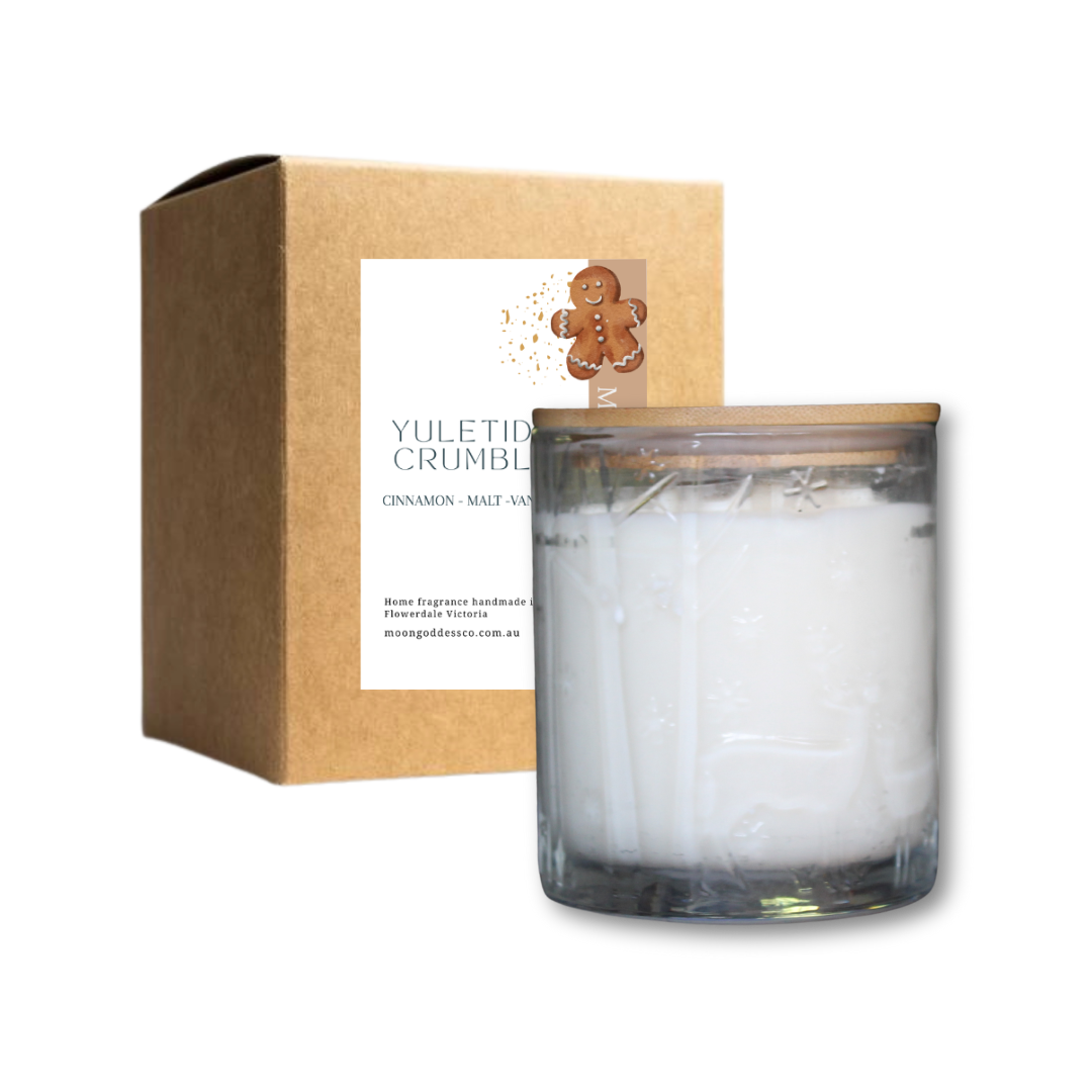 Scented in Yuletide Crumble, this comforting blend of warm gingerbread, vanilla sugar, and cinnamon wraps your space in cozy sweetness like fresh cookies baking on a winter morning.