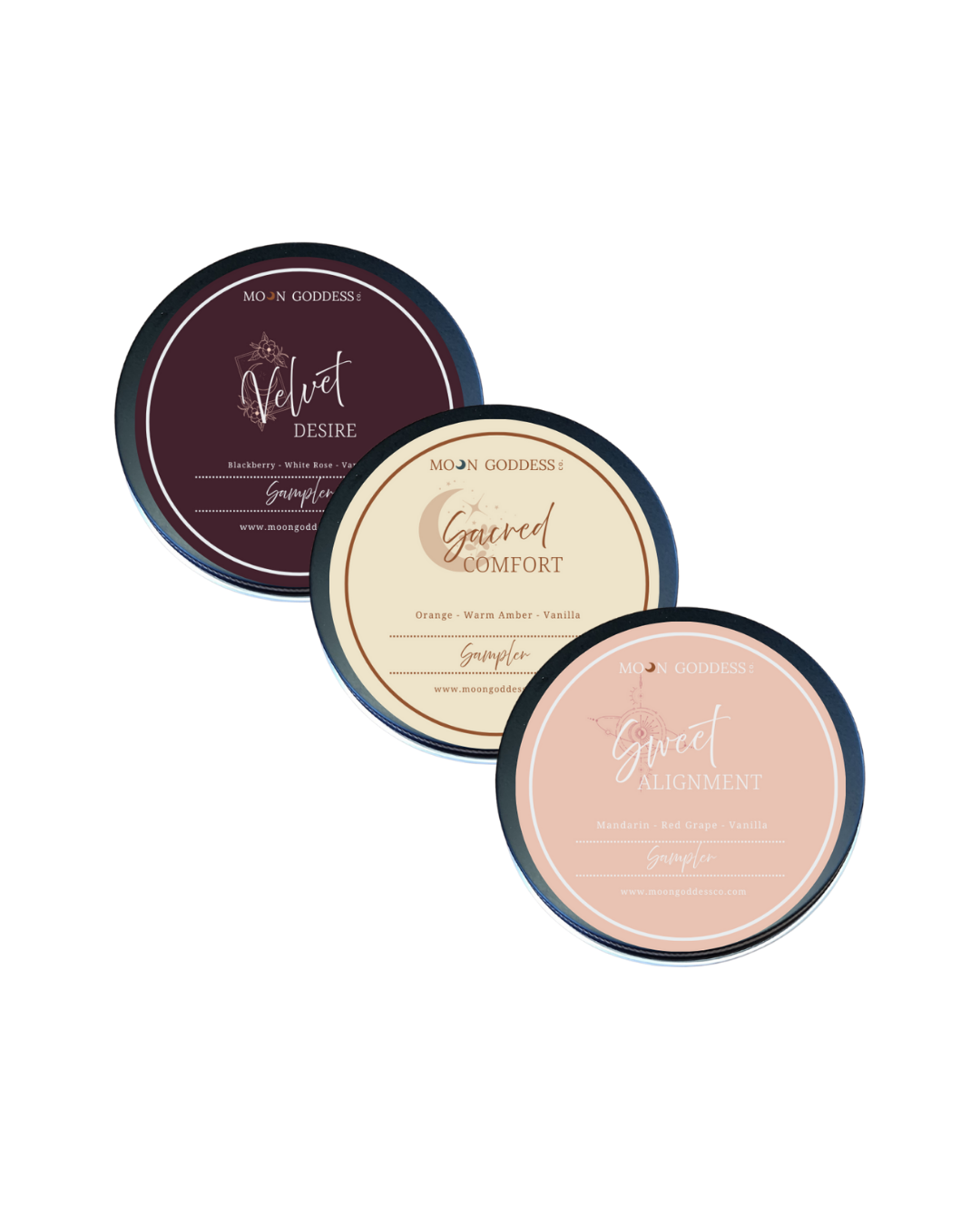 Featuring Velvet Desire, Sacred Comfort, and Sweet Alignment, this bundle is designed for moments when you crave familiarity, calm, and a little extra care. Hand-poured using our clean-burning coconut–soy wax blend, each candle offers a smooth, even burn with a rich yet comforting scent throw.