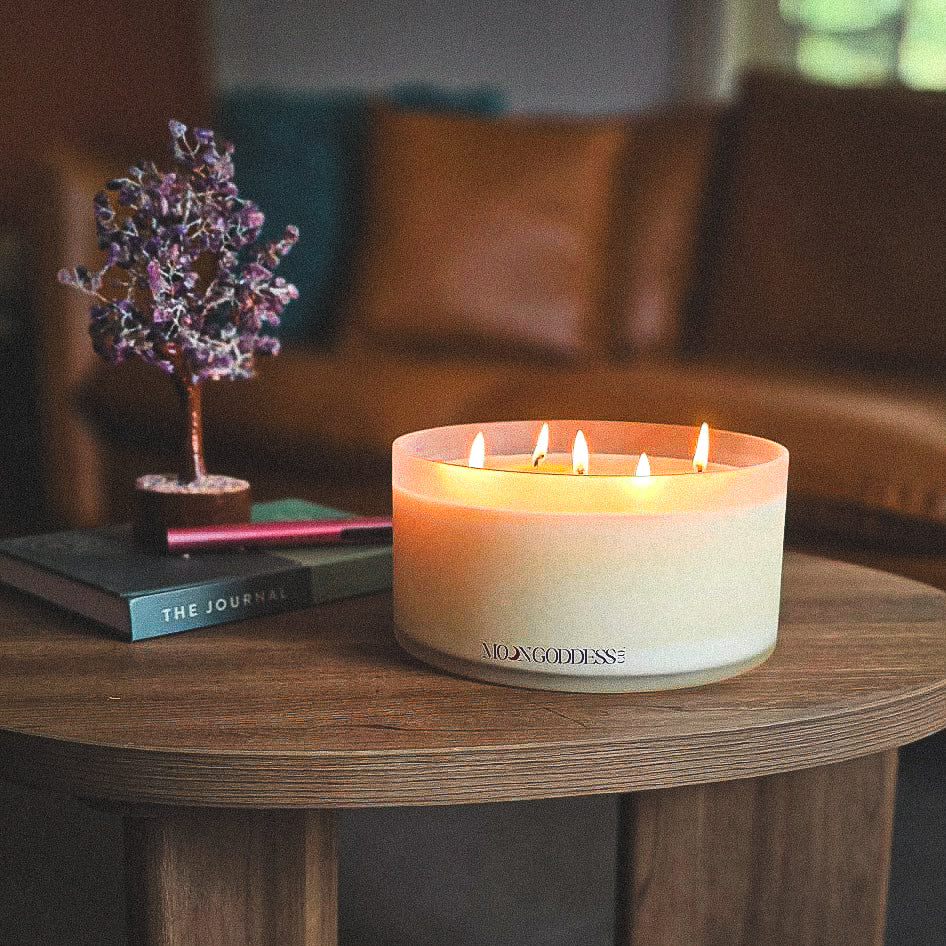 The Luna Calm Halo Candle Bowl is a 1.5kg statement candle designed to help slow the energy of your space and invite deep relaxation. Featuring five lead free cotton wicks, this candle creates a wide, even melt pool and delivers up to 150+ hours of smooth, consistent burn time and gentle fragrance diffusion.