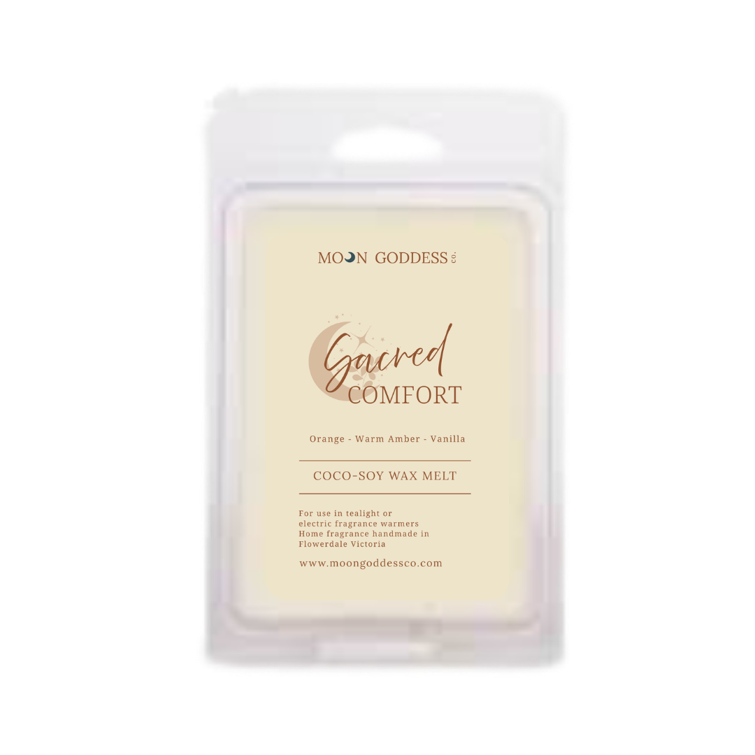 Our wax melts are a flame-free way to enjoy your favourite Moon Goddess Co scents. Hand-poured with intention using natural coconut-soy wax, they gently release fragrance when warmed, creating a calm and comforting atmosphere.